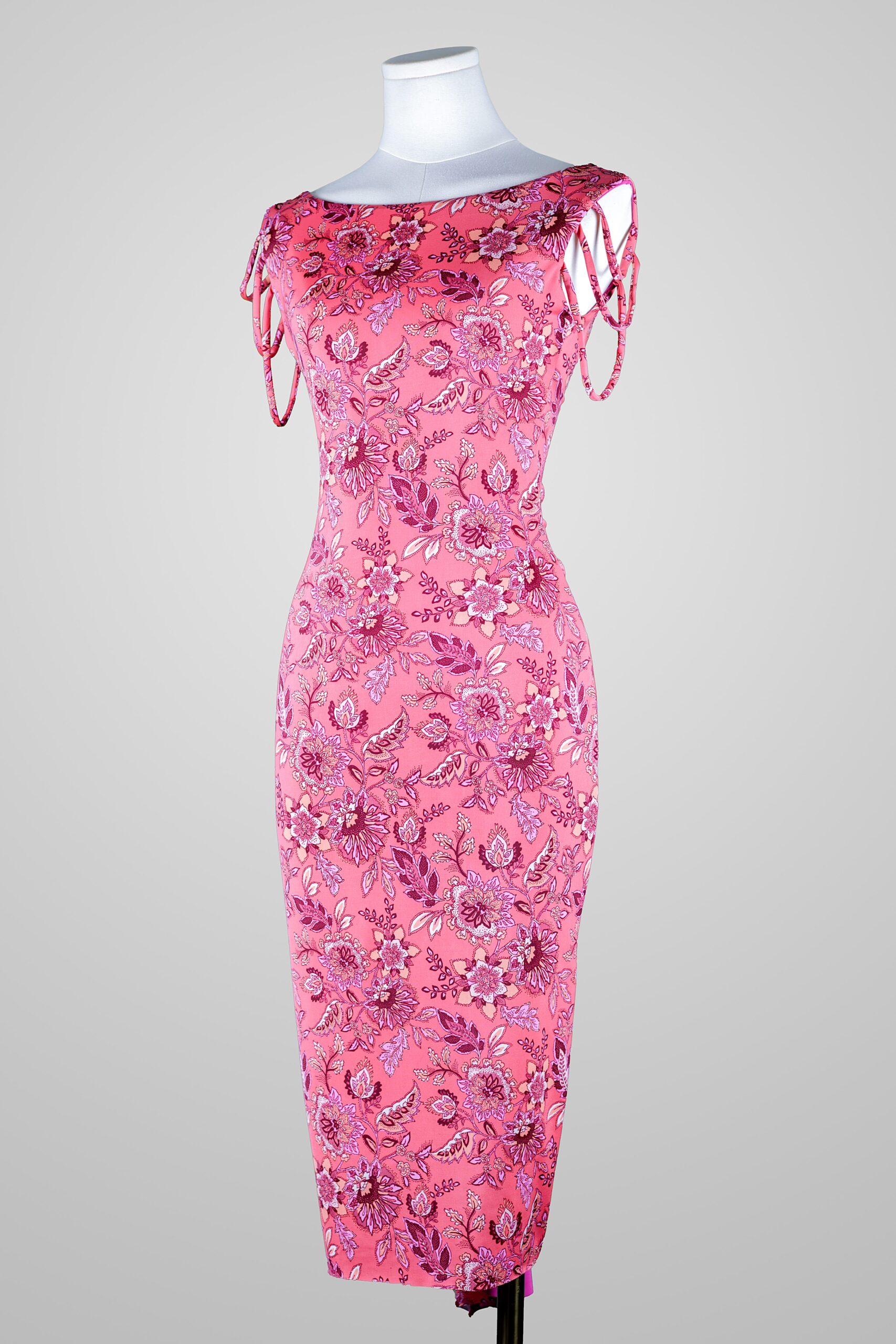 New silhouette has arm strap details. Fully reversible to summer pink! Deep low back available in bra friendly option.