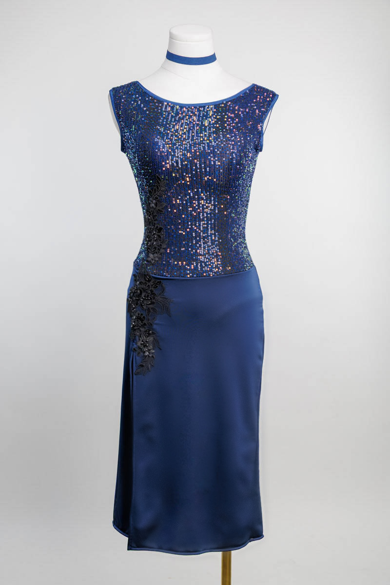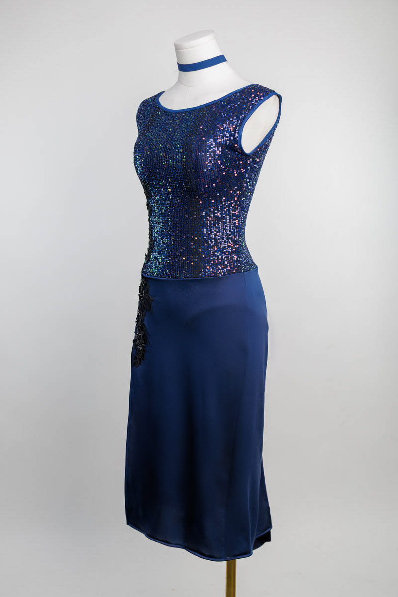 Step into the spotlight our all over navy sequin performance dress.