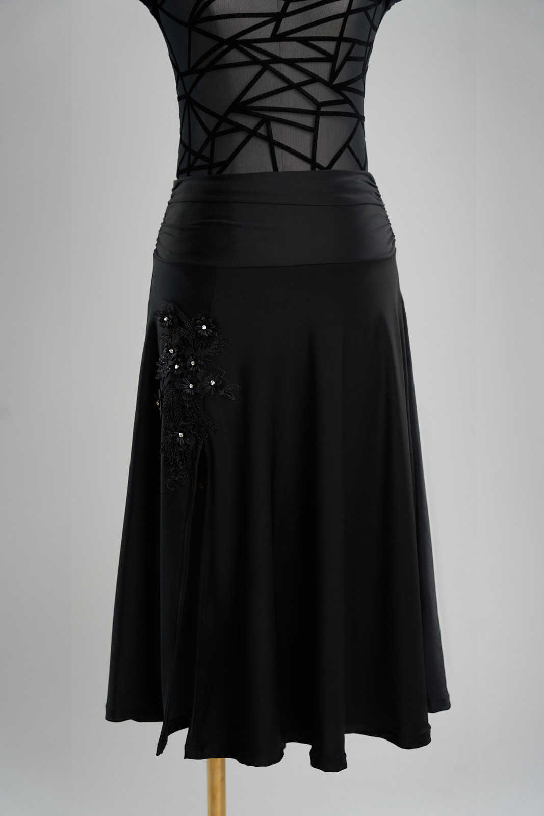 New to our core collection! Unlike any showcase skirt, this one is specially made for Tango allowing you to swivel in elegance while showing a little leg (or lots!). Tummy control wide waistband adds cinch and comfort on the dance floor. Wear high waisted or low waisted, create your own look. Available in a lower or higher slit.