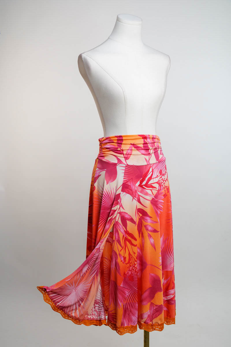 New to our core collection! Unlike any showcase skirt, this one is specially made for Tango allowing you to swivel in elegance while showing a little leg (or lots!). Tummy control wide waistband adds cinch and comfort on the dance floor. Wear high waisted or low waisted, create your own look. Available in a lower or higher slit.