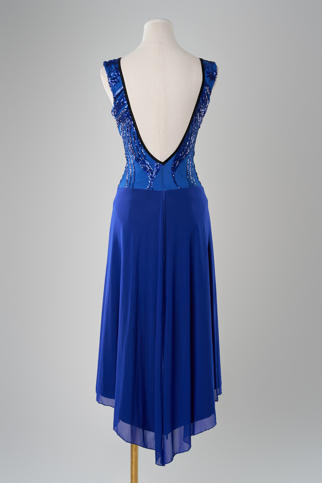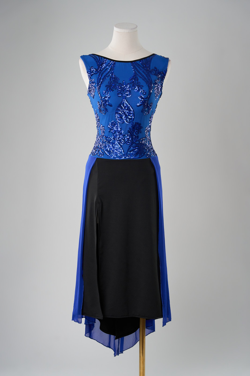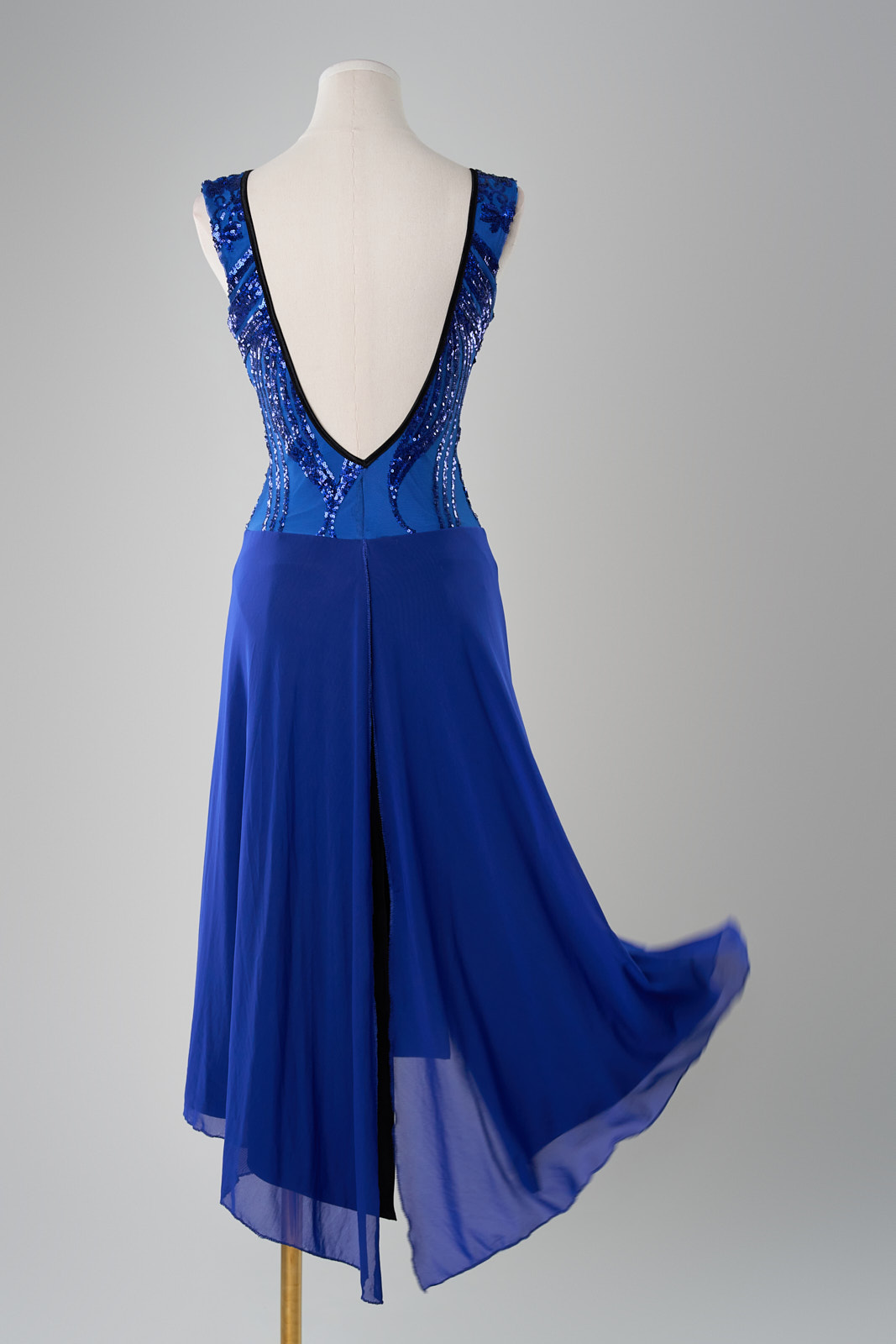 Dreams do come true in this fantasy Tango inspired silhouette. Dramatic details makes this dress unique and vividly enchanting on the dance floor. Full skirt mesh overlay crafted over a side and back slit underskirt creating a flowy look on the dance floor. Limited edition. Sequin patterns vary – No two are alike!